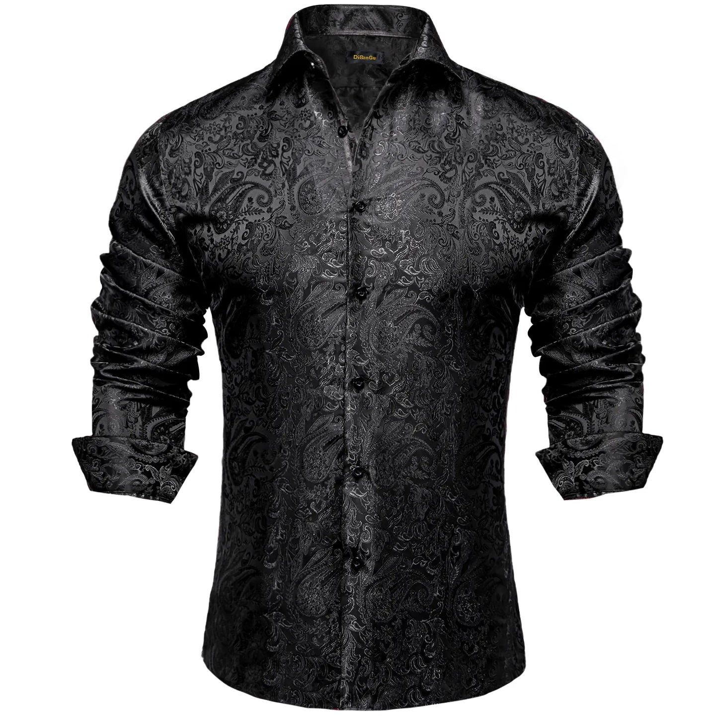 Men's Long Sleeve Black Paisley Silk Dress Shirts Men Clothing