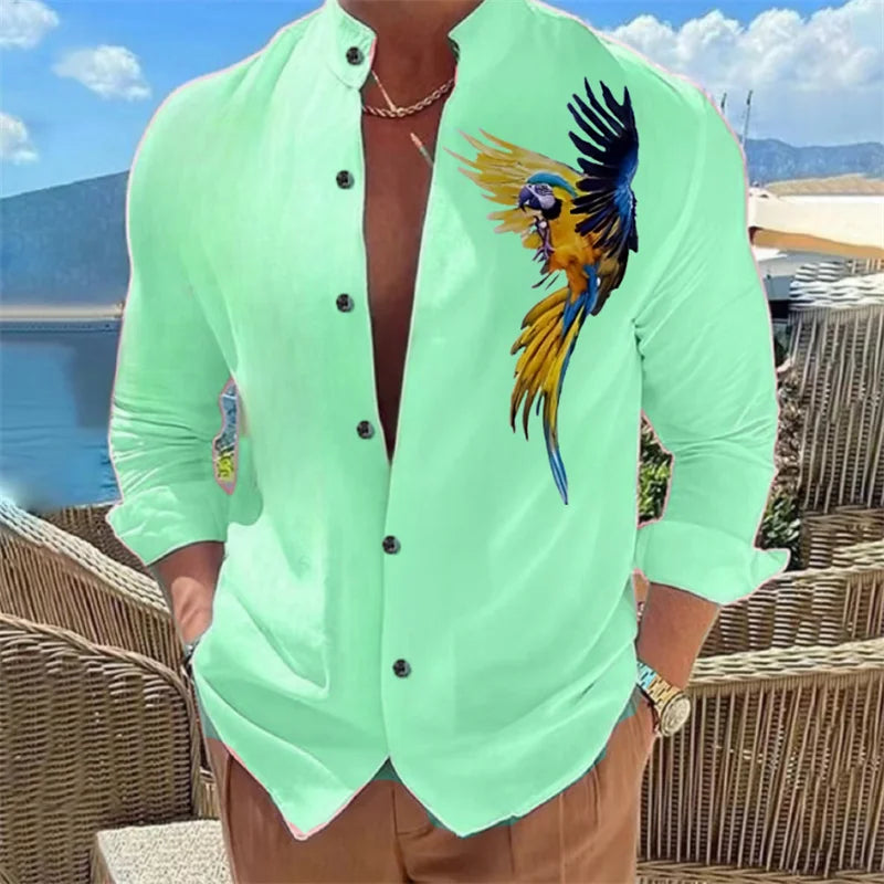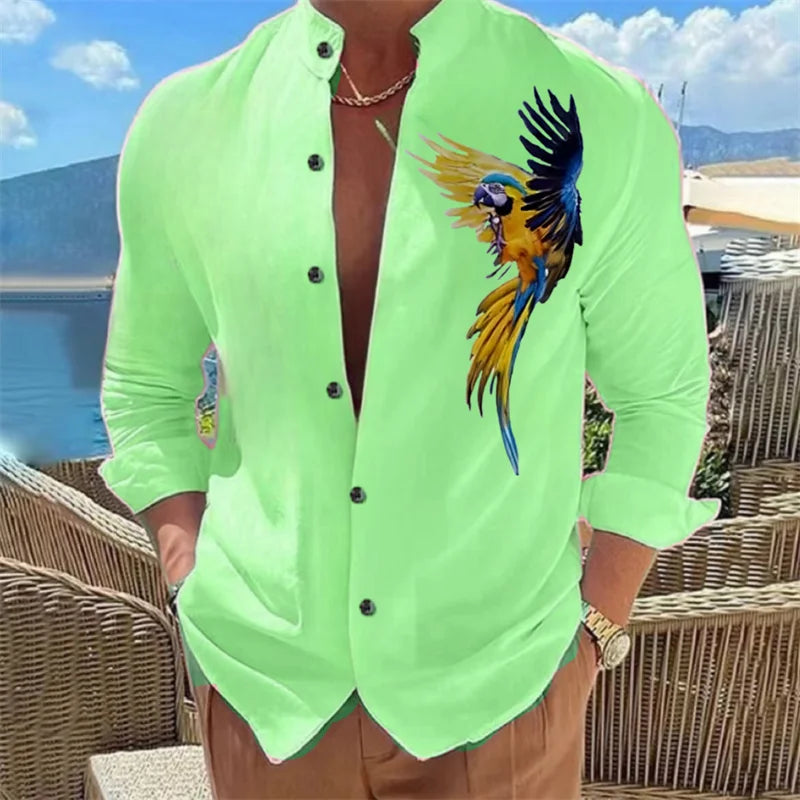 Men's shirt buckle shirt Hawaiian clothing 3D printing 9 colour animal parrot fashion casual long sleeves comfortable fabrics