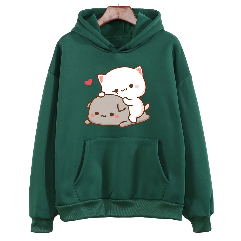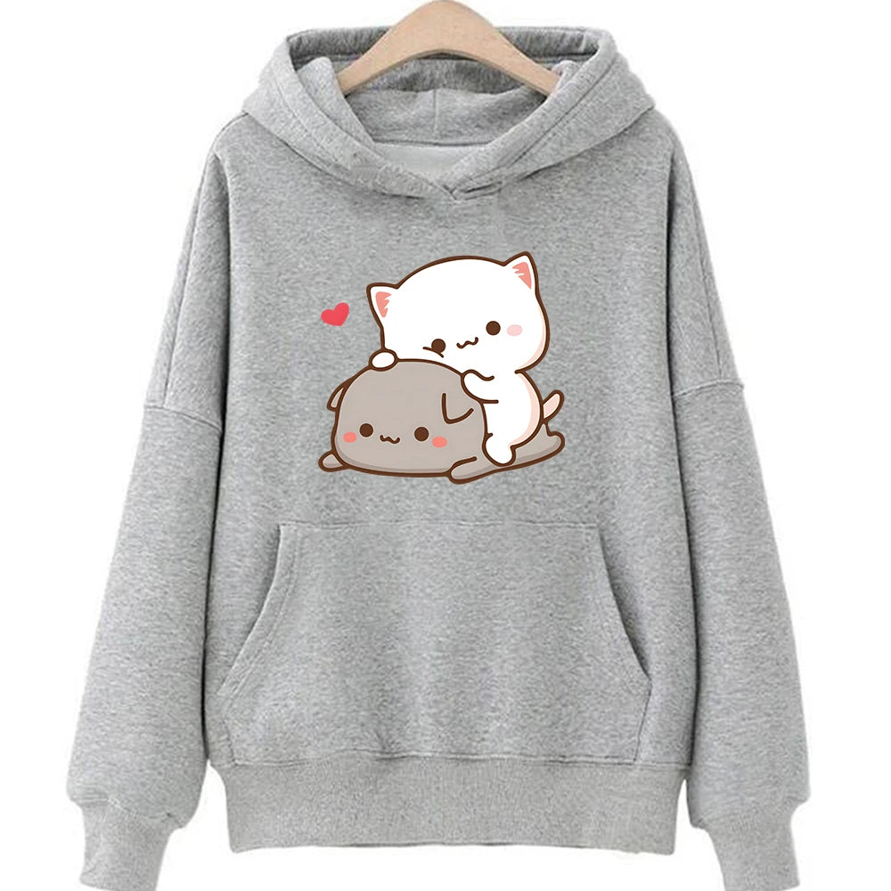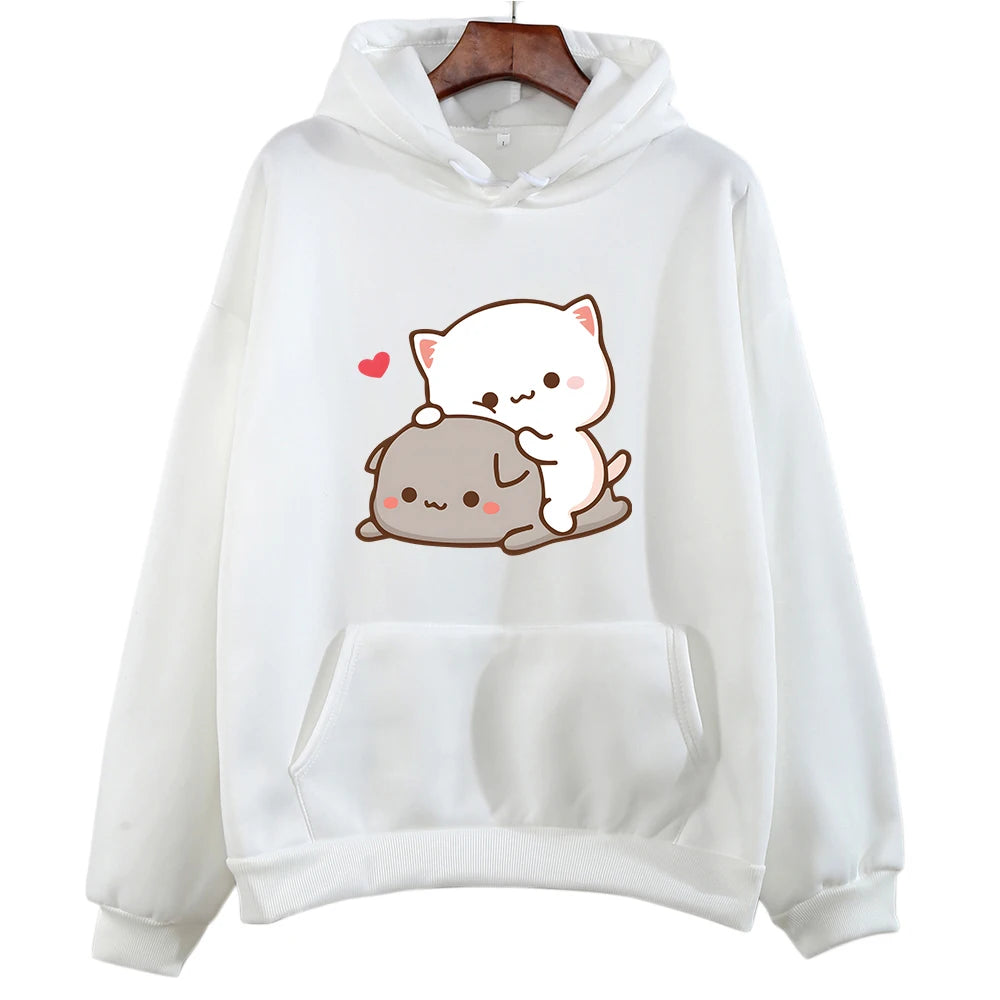 Mochi Peach And Goma Cute Cat Hoodie Sweatshirt for Girls Fashion Kawaii Cartoon Pullovers Women/Men Harajuku Aesthetic Hoodies