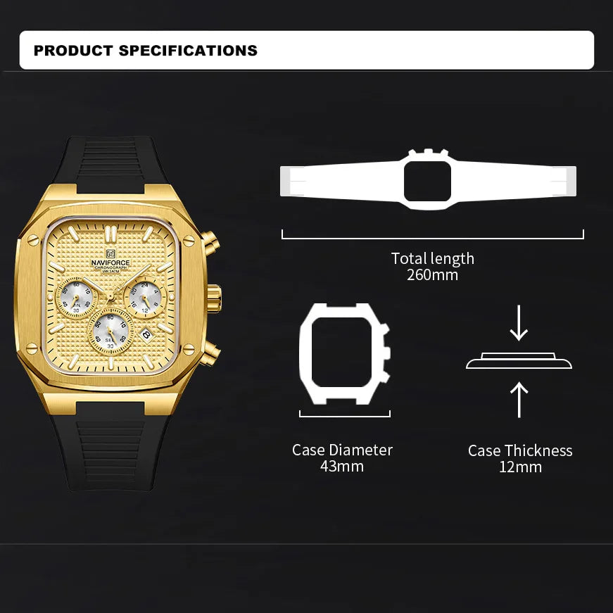 Top Luxury Gold Watches for Men Fashion Silicone Strap Quartz Square Wristwatch Waterproof Luminous hands Date Clock