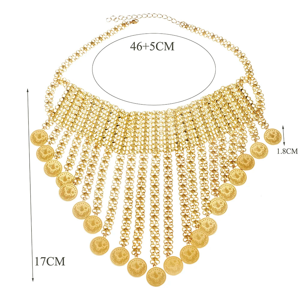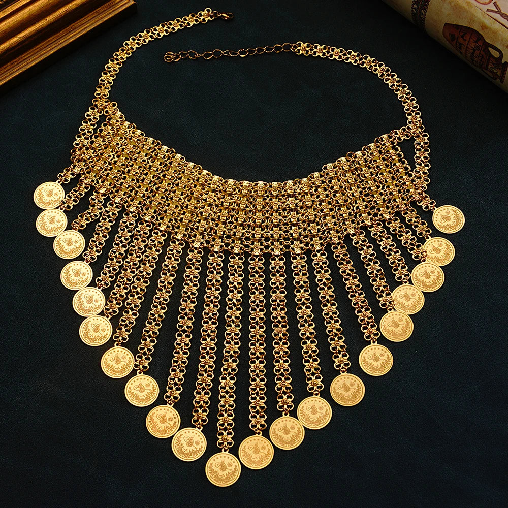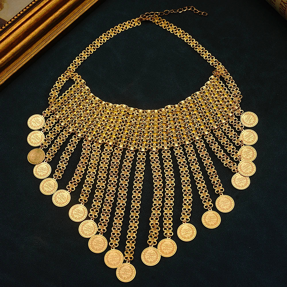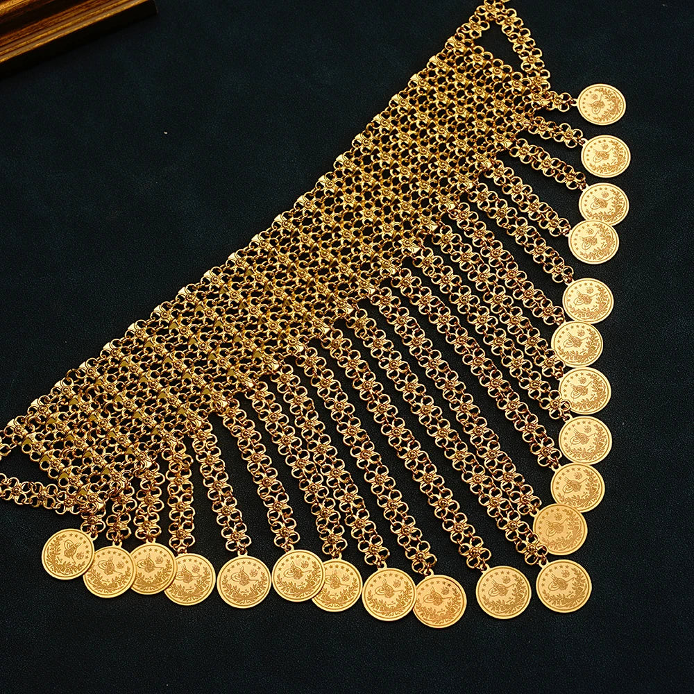 New Tassels Gold Plated Coin Necklace for Women Turkish Bridal Chains Necklaces Ethinc Wedding Jewelry Bride Gifts
