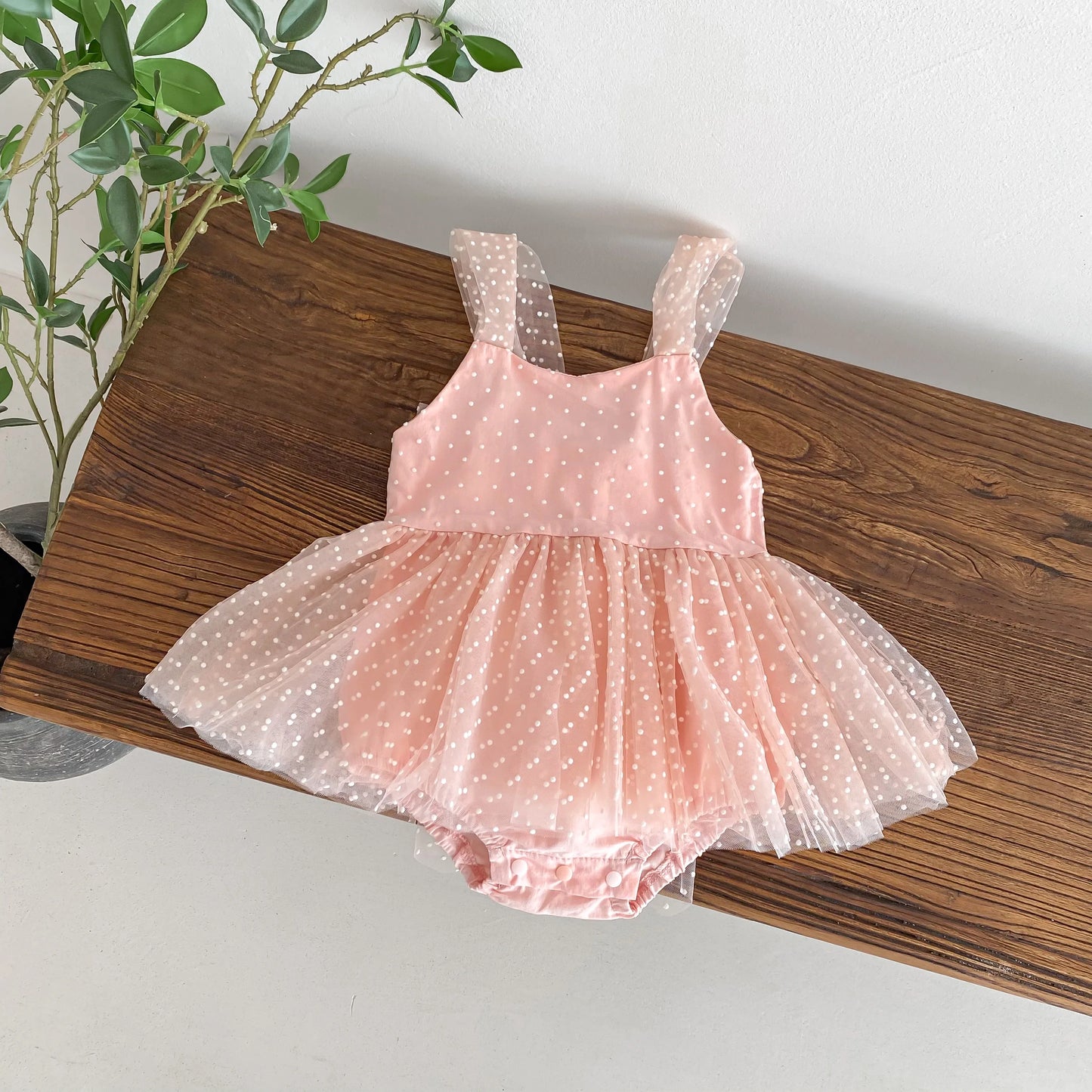 Newborn Jumpsuit Baby Girls Romper White Pink Elegant Gauze Polka Dot Singlet Princess Dress 0-2yrs