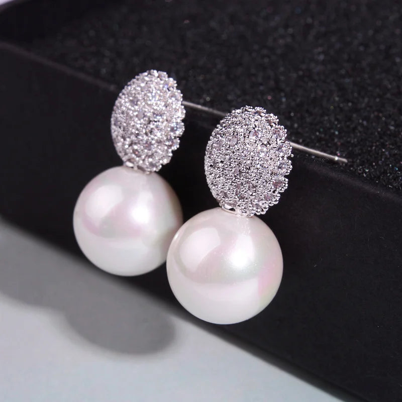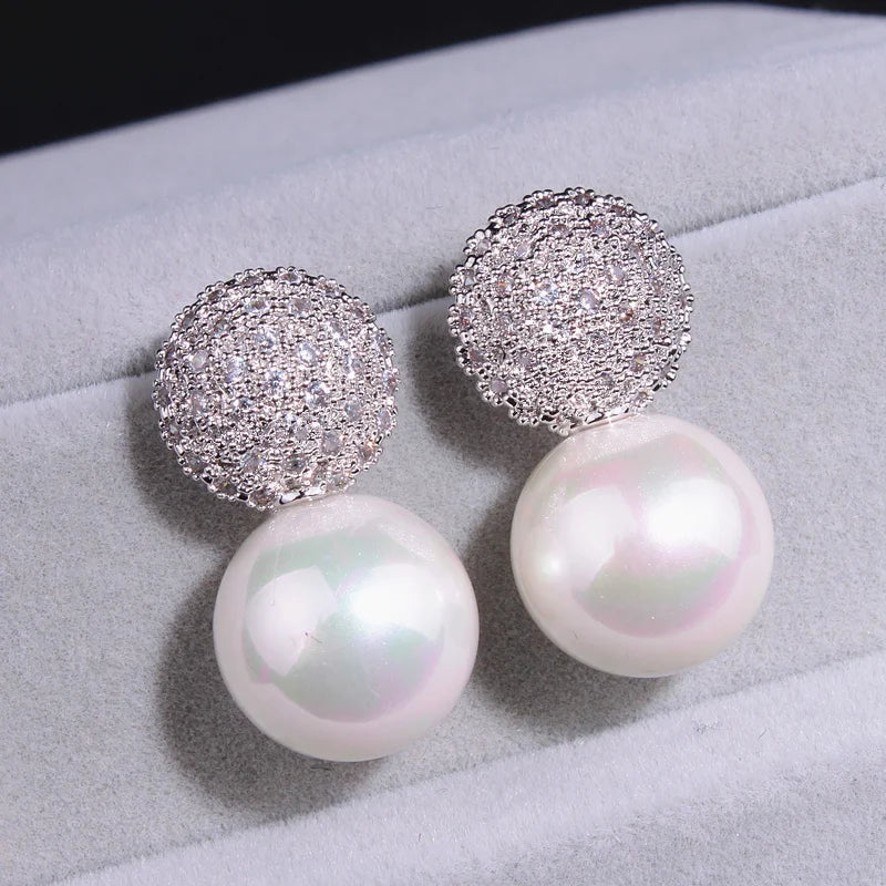 Pearl Earrings Elegant Crystals Stud Earrings For Women