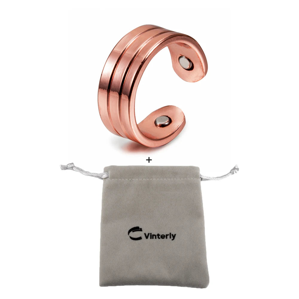 Vinterly Pure Copper Magnetic Ring for Women Men Trendy Health Energy Finger Open Cuff Adjustable Jewelry High Magnet Resizable