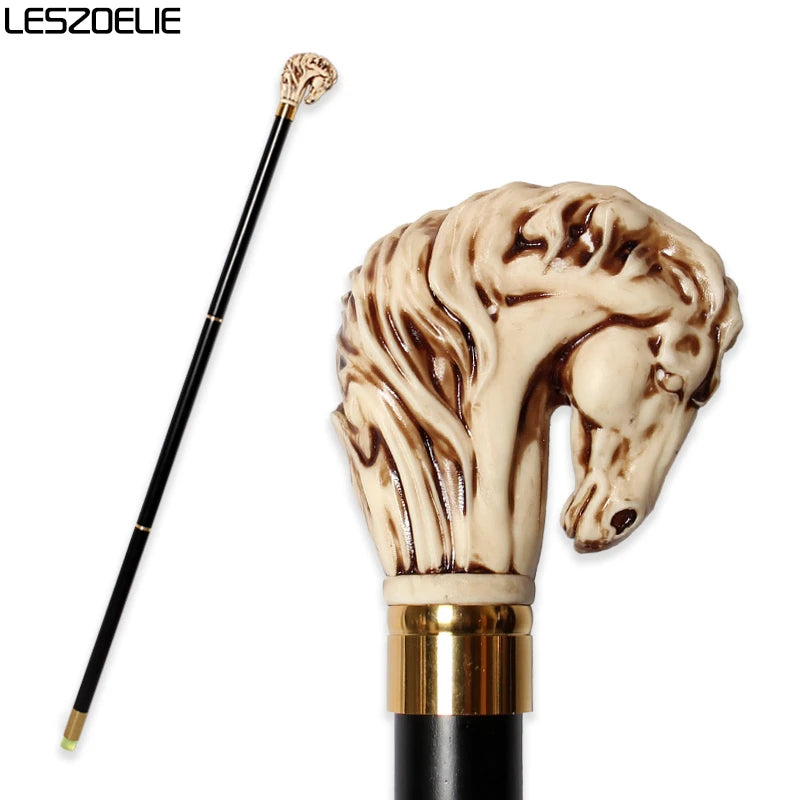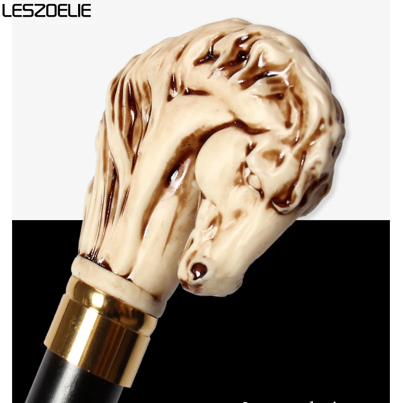 97cm Retro Horse Head Resin Handle Stick Men German Beech Detachable Wooden Fashion Walking Sticks Women Party Decorative Canes