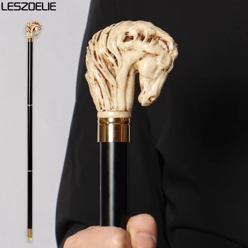 Retro Horse Head Resin Handle Stick Men German Beech Detachable Wooden Fashion Walking Sticks