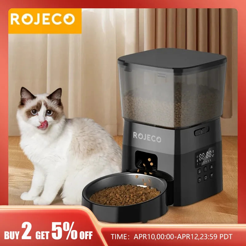 ROJECO Automatic Pet Feeder Button Version Auto Cat Food Dispenser Accessories Smart Control Pet Feeder For Cats Dog Dry Food