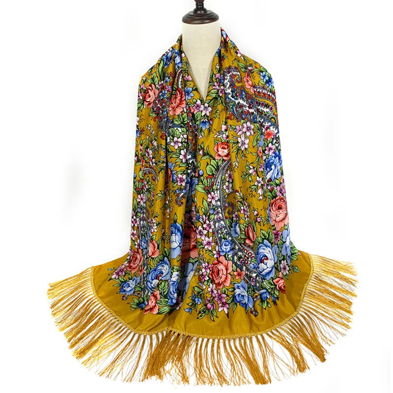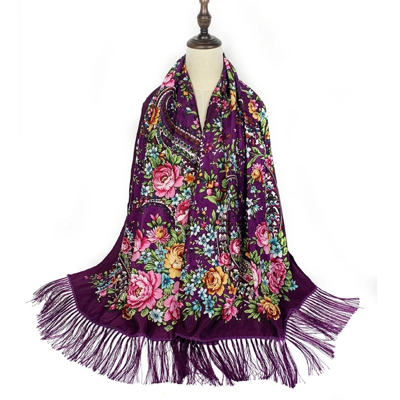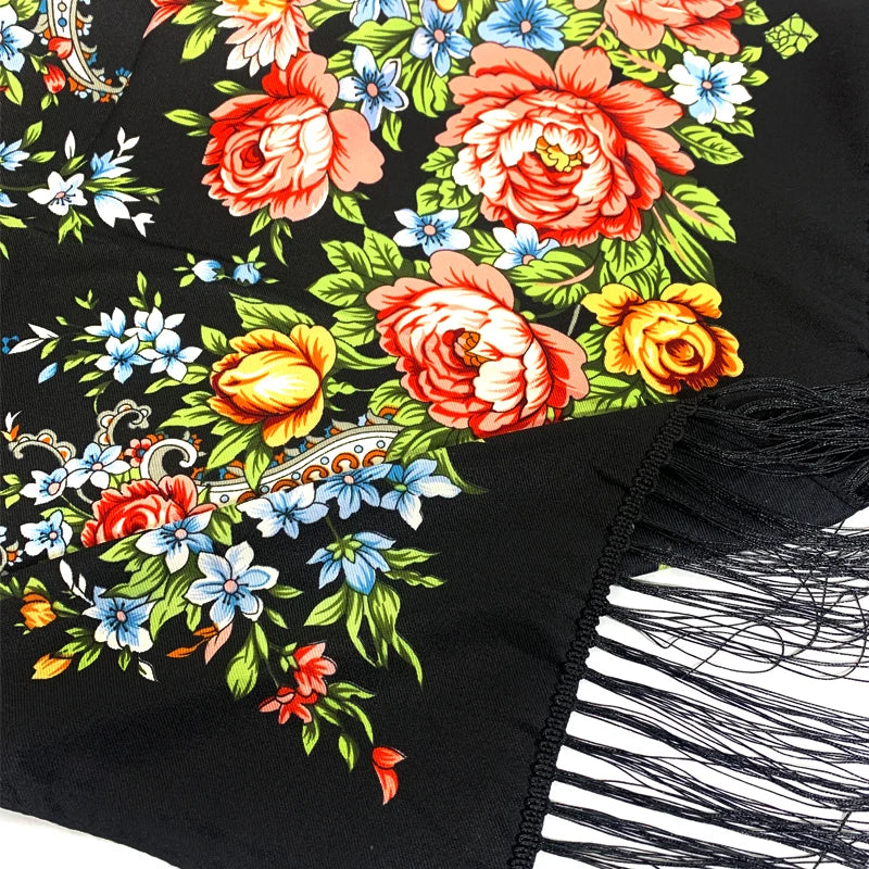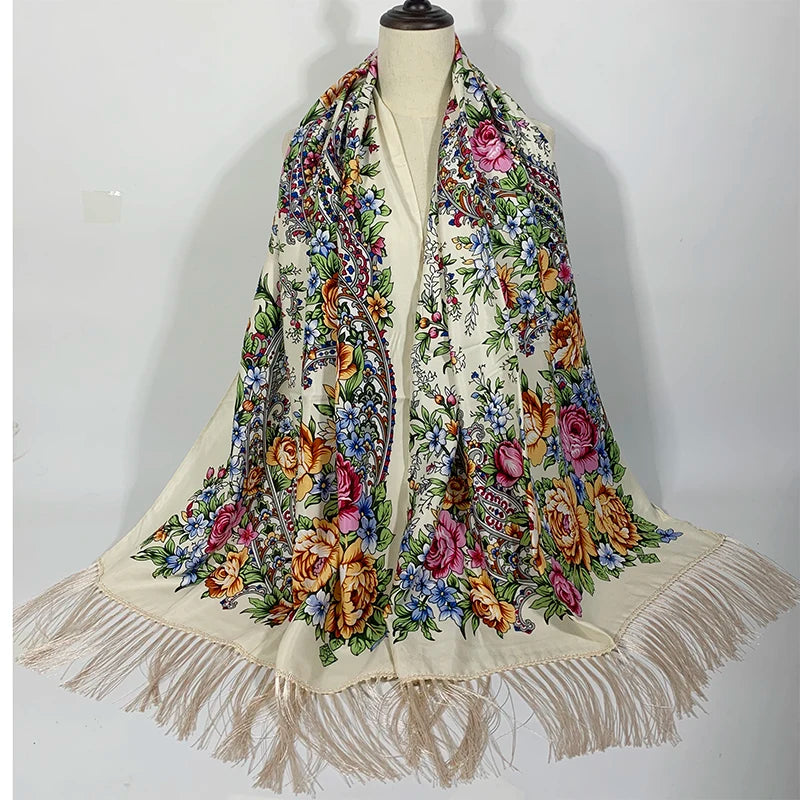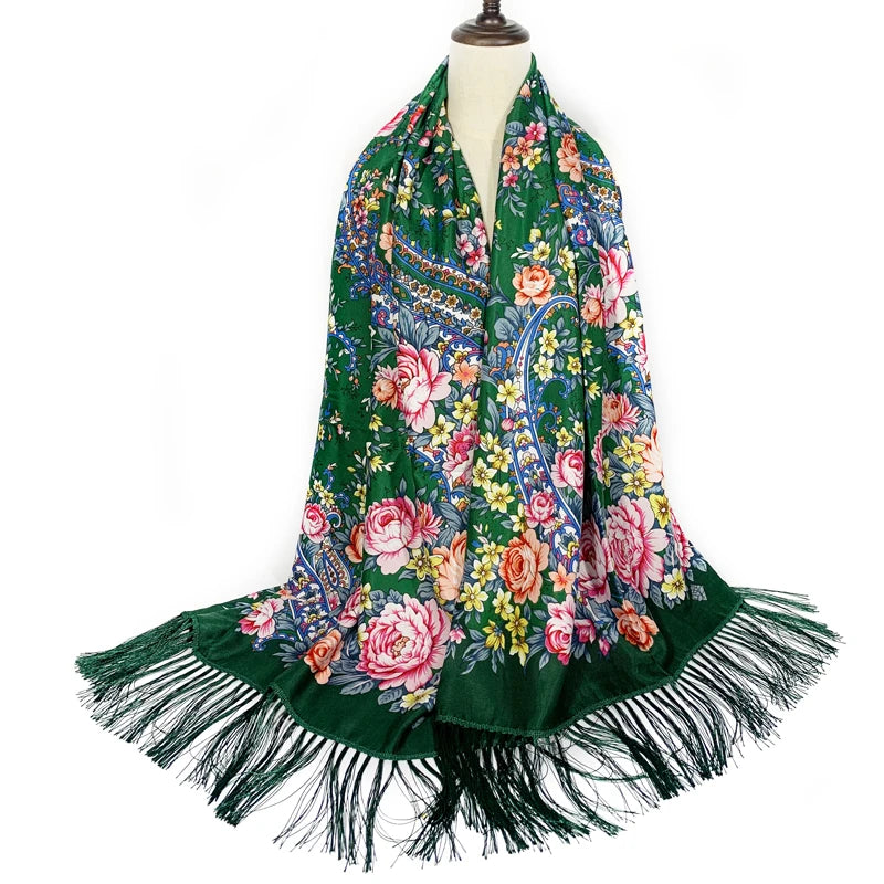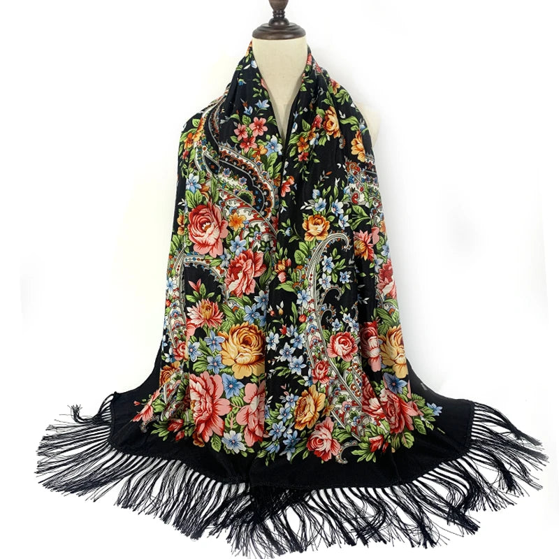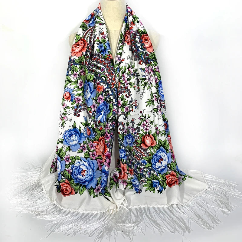 Russian National Scarf Women Floral Print Bandana Shawl Ethnic Fringed Handkerchief Babushka Hijab Head Wraps Pashmina