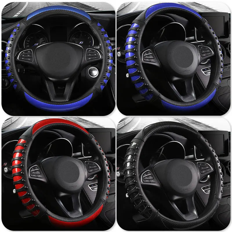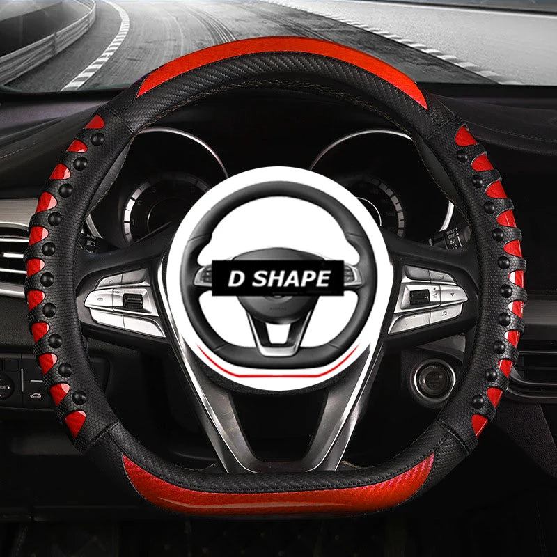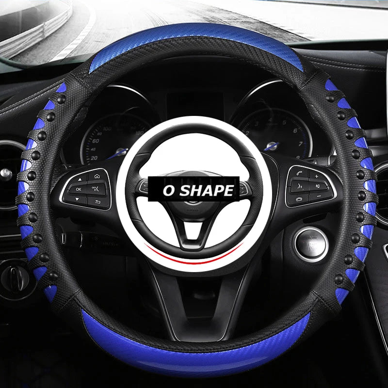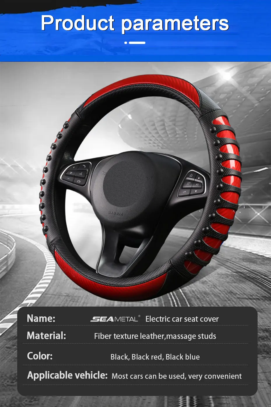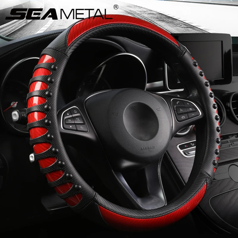 SEAMETAL Premium Steering Wheel Cover Carbon Fiber Sport Steer Wheel Cover Protector with Massage Studs Anti Skid 38CM Universal