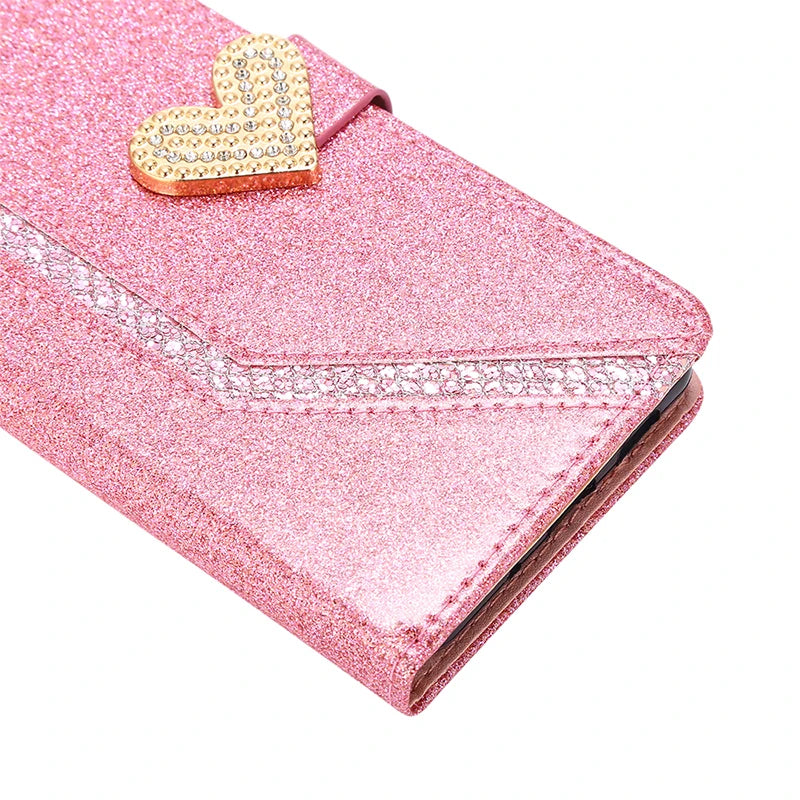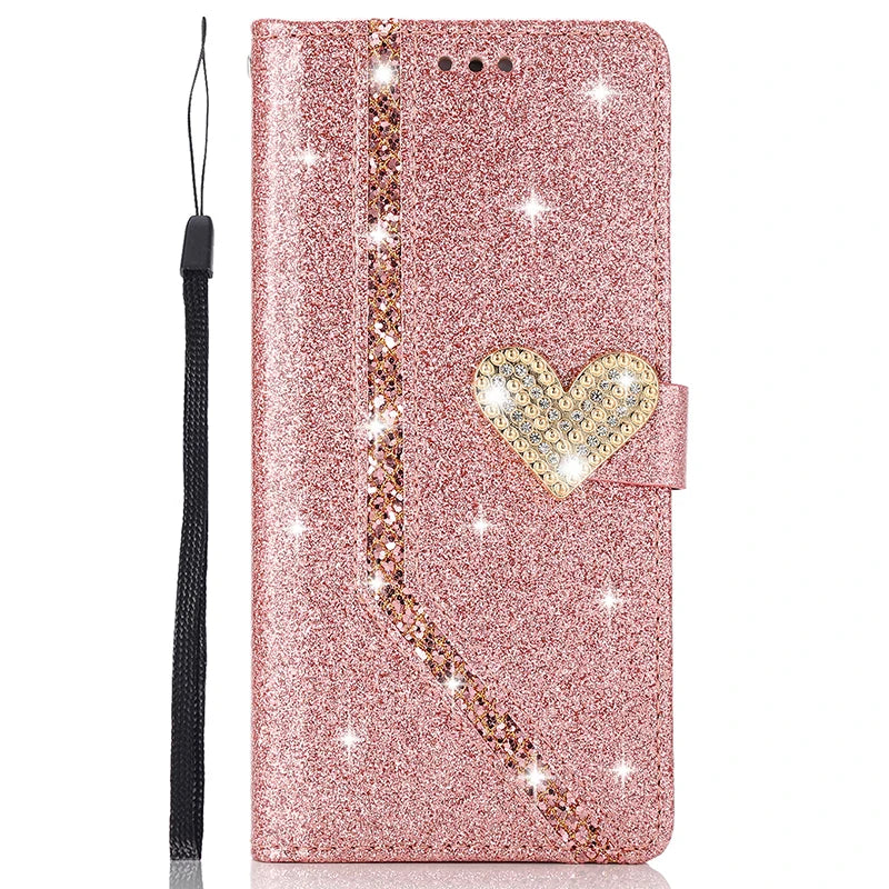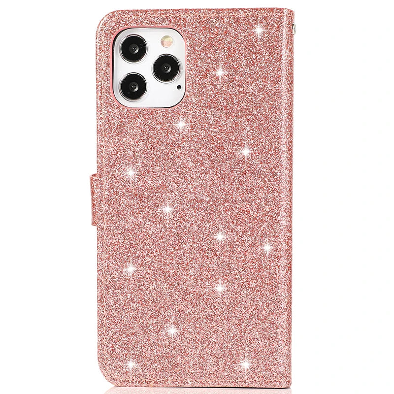 Shiny Case For iPhone 15 14 13 Pro 12 MINI 11 Pro X XR XS XS Max 7 8 Plus 6 6S SE Wallet Flip Leather Case