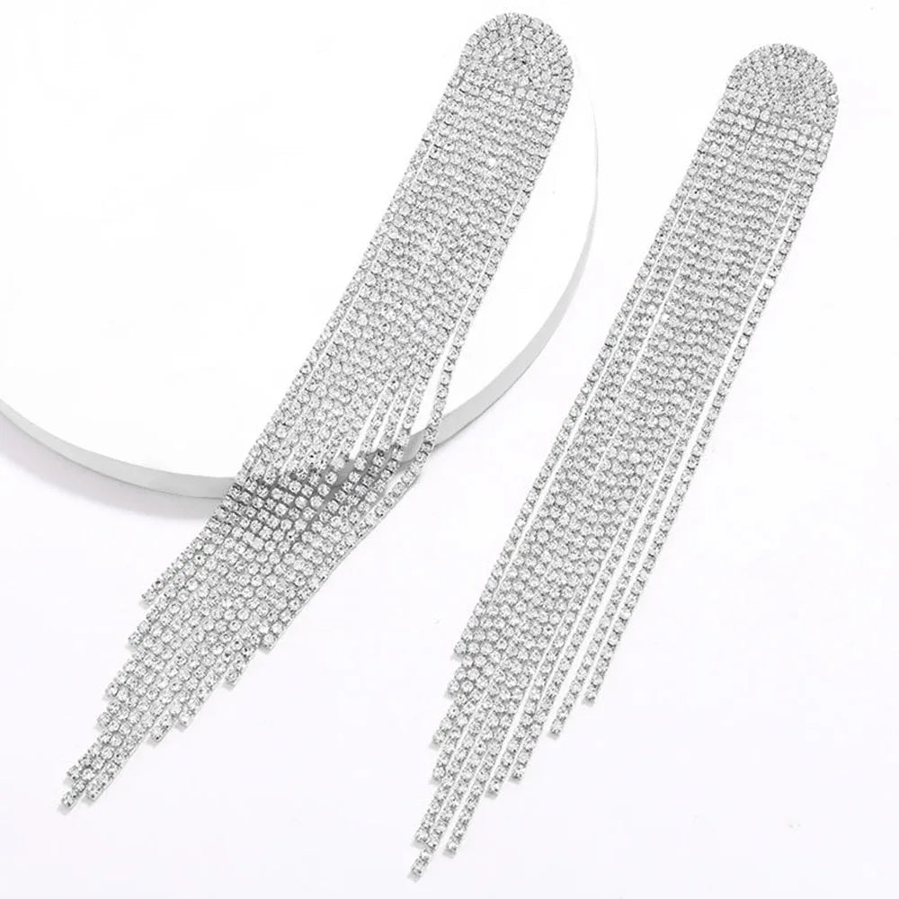 Shiny Rhinestone Long Tassel Drop Earrings Dangle Earring Statement Jewelry