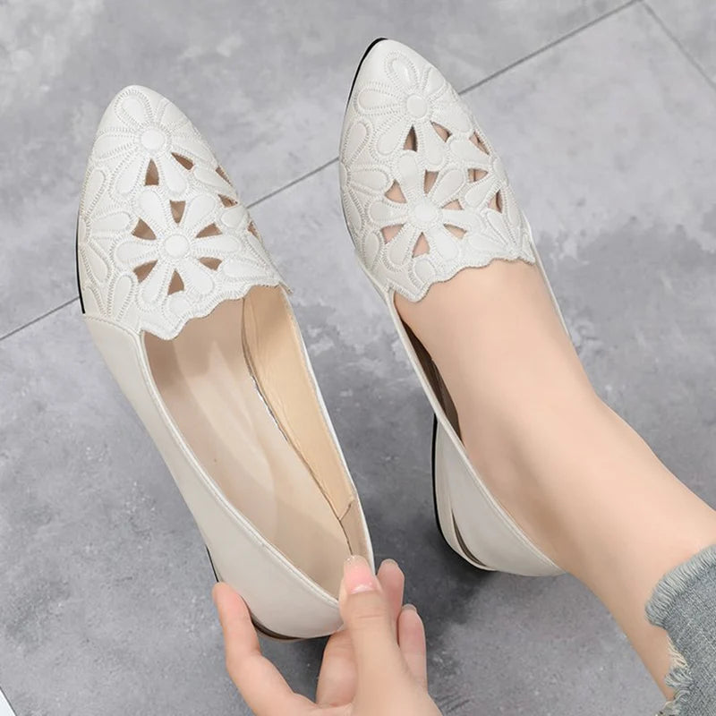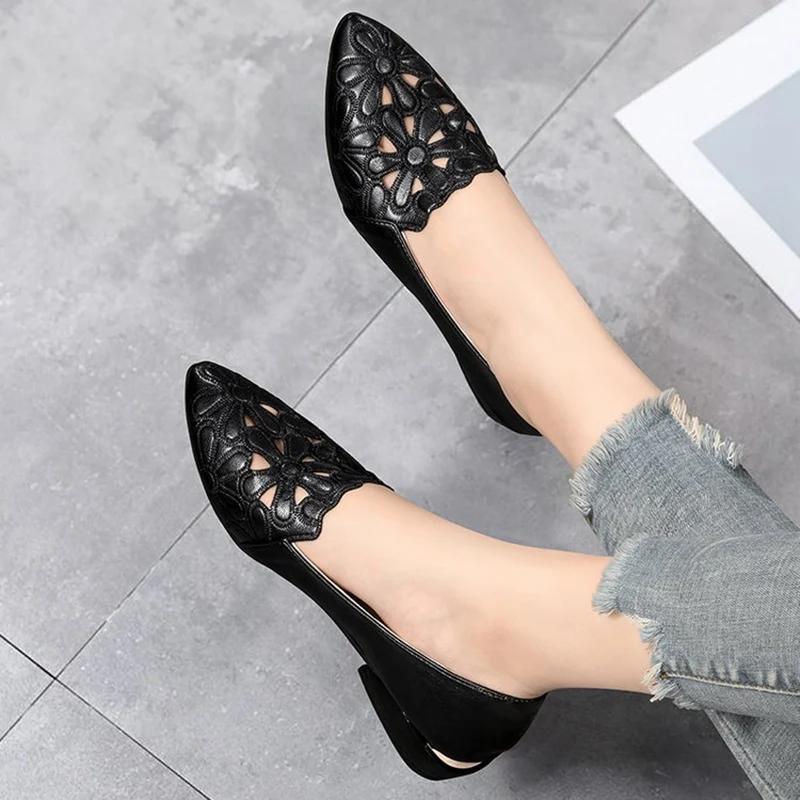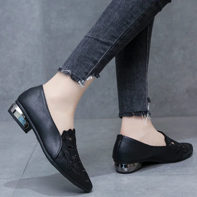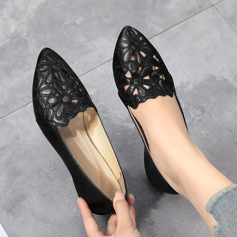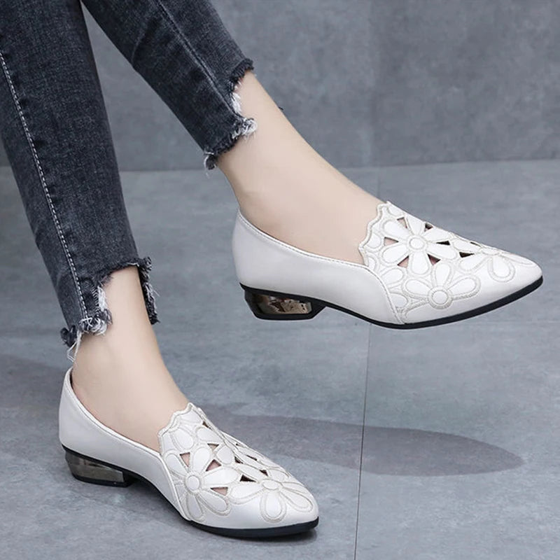 Fashion Shoes for Women Embroidery Breathable Square Heel Loafers Slip On Pointed Toe Leather Single Shoes Elegant Party Pumps