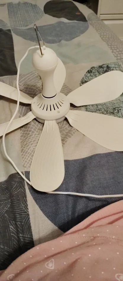 Small ceiling fan great for hot summer and windless day, also for dormitory bed or outdoor camping tents.