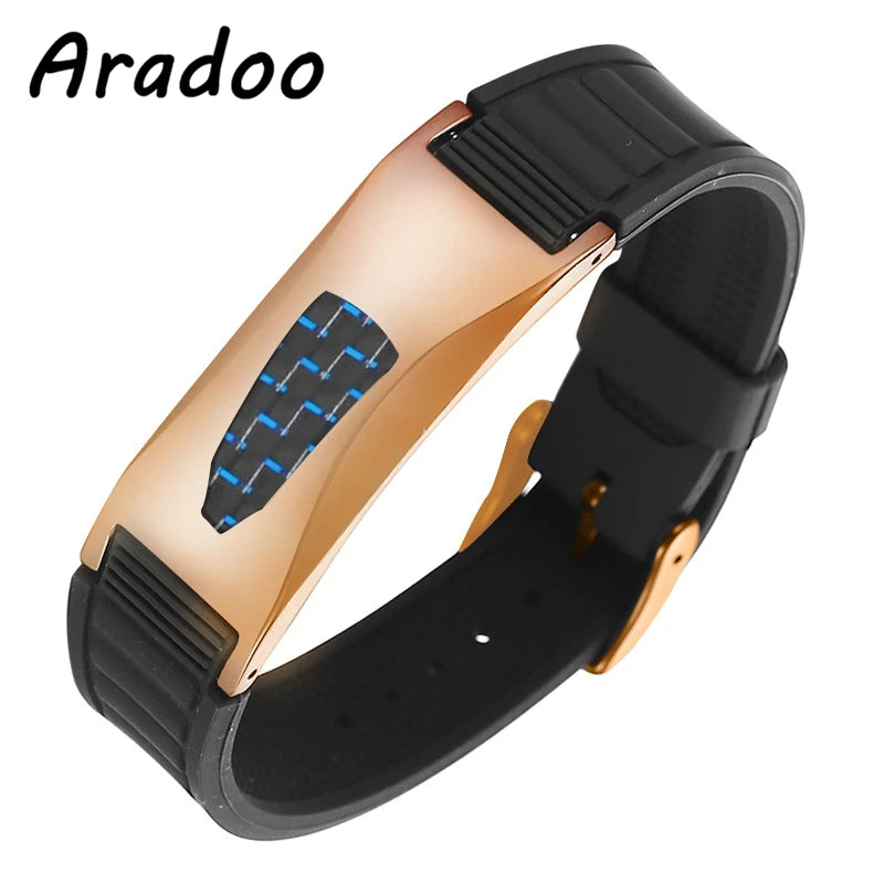 ARADOO Silicone Carbon Fiber Power Wristband Balance Bracelets for Men Women 7-in-1 Magnetic Sports Braceletv