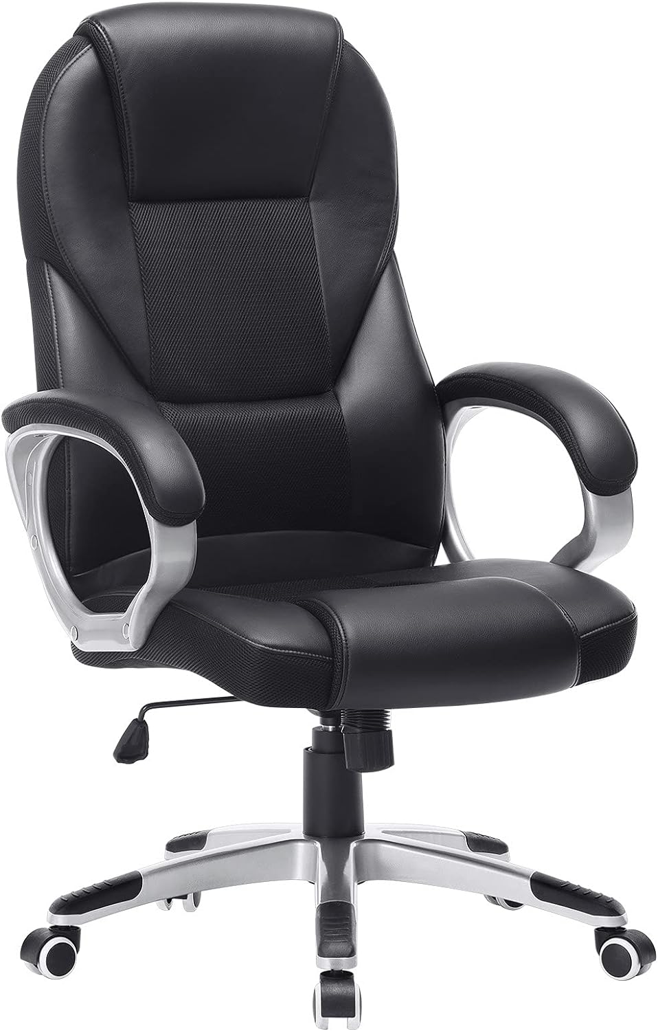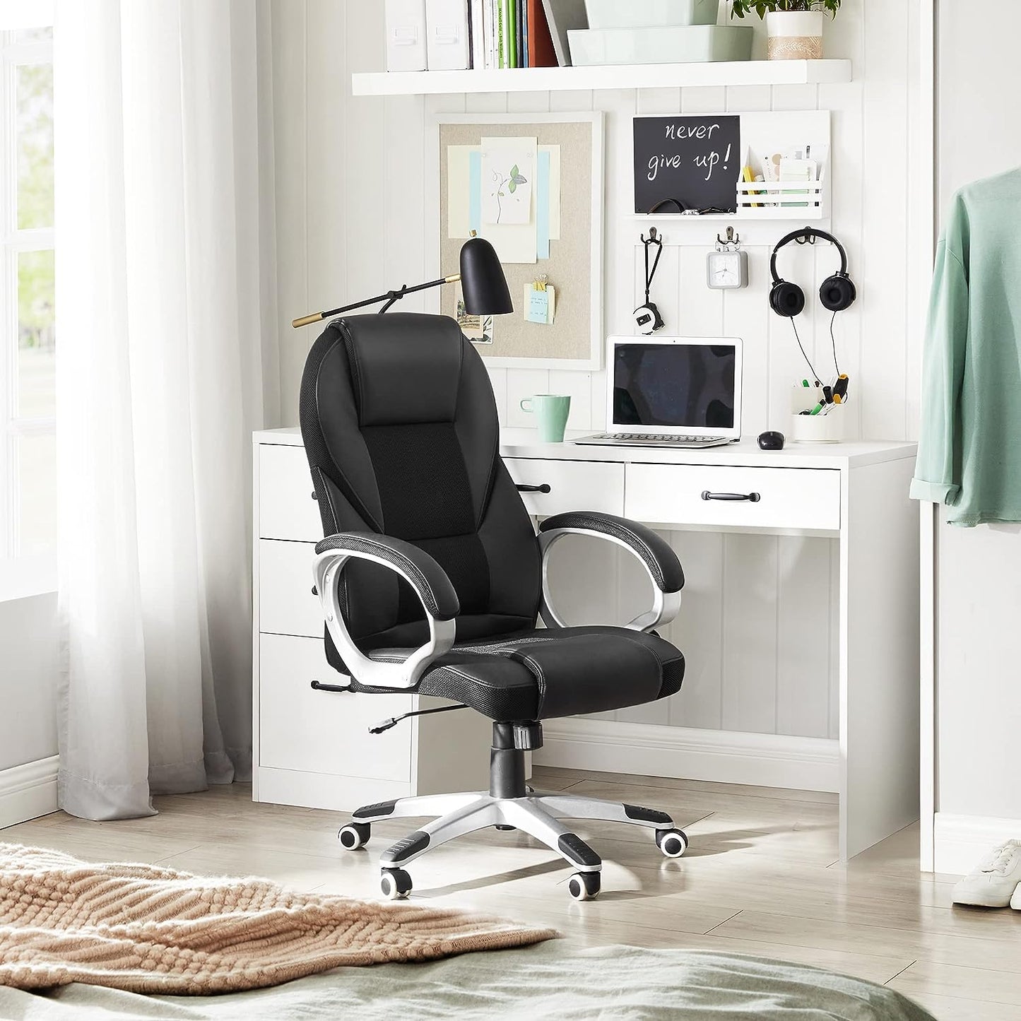 SONGMICS Executive Office Chair with High Back, Durable and Stable, Height Adjustable, Ergonomic, Black, OBG22BUK, 73 x 70 x (112-122) cm