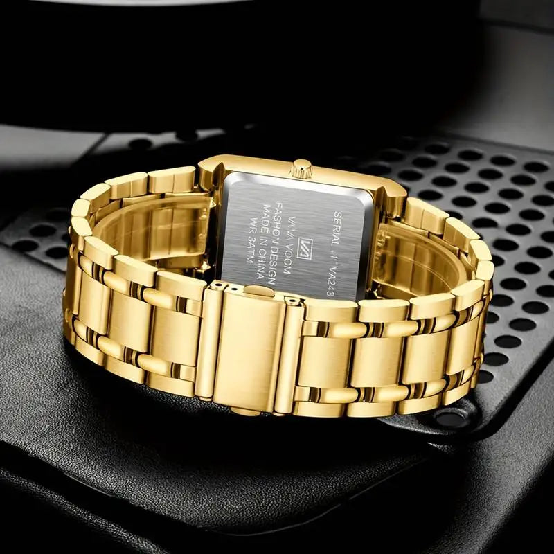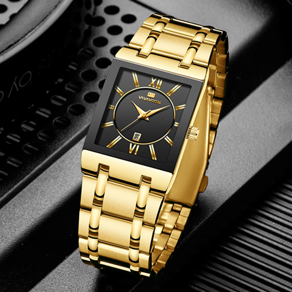 Square Men's Watches Luxury Golden Quartz Stainless Steel Waterproof Wrist Watch