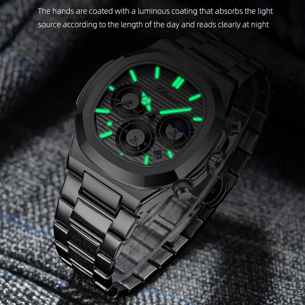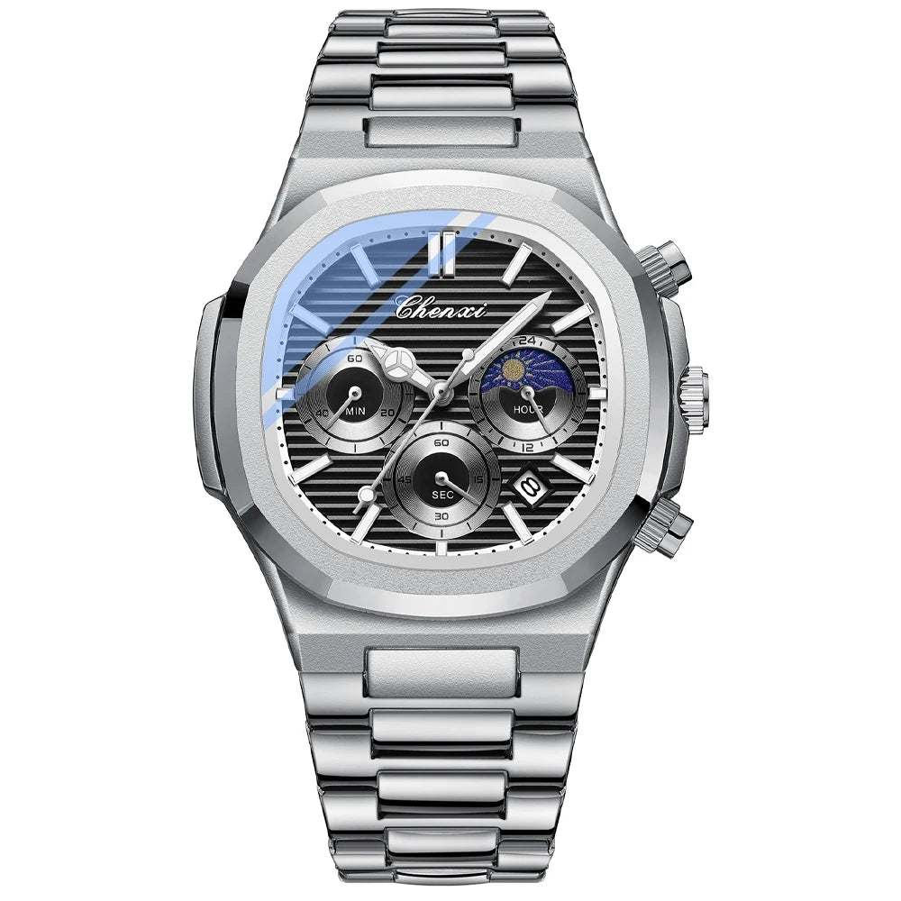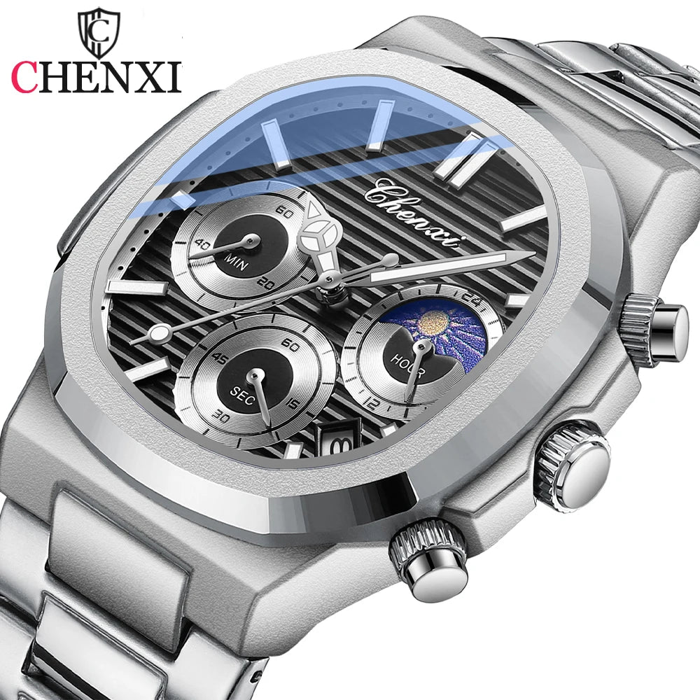 CHENXI Stainless Steel Watches for Men's Creative Fashion Luminous Dial with Chronograph Clock Male Casual Quartz Wristwatches