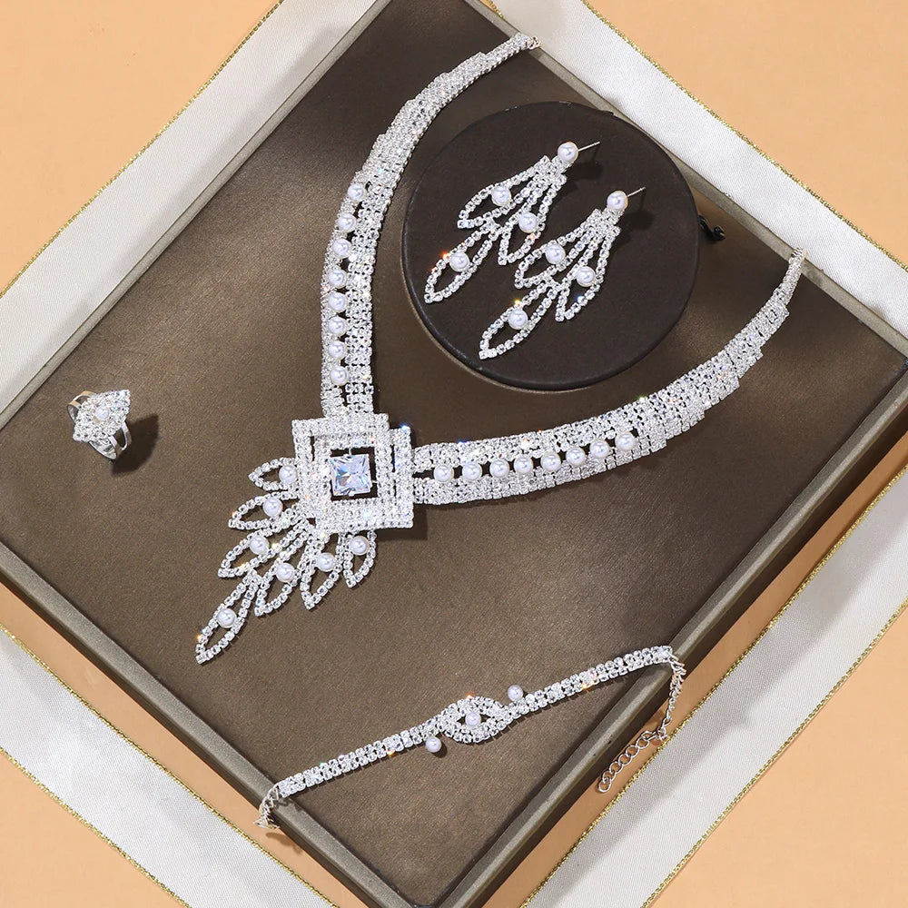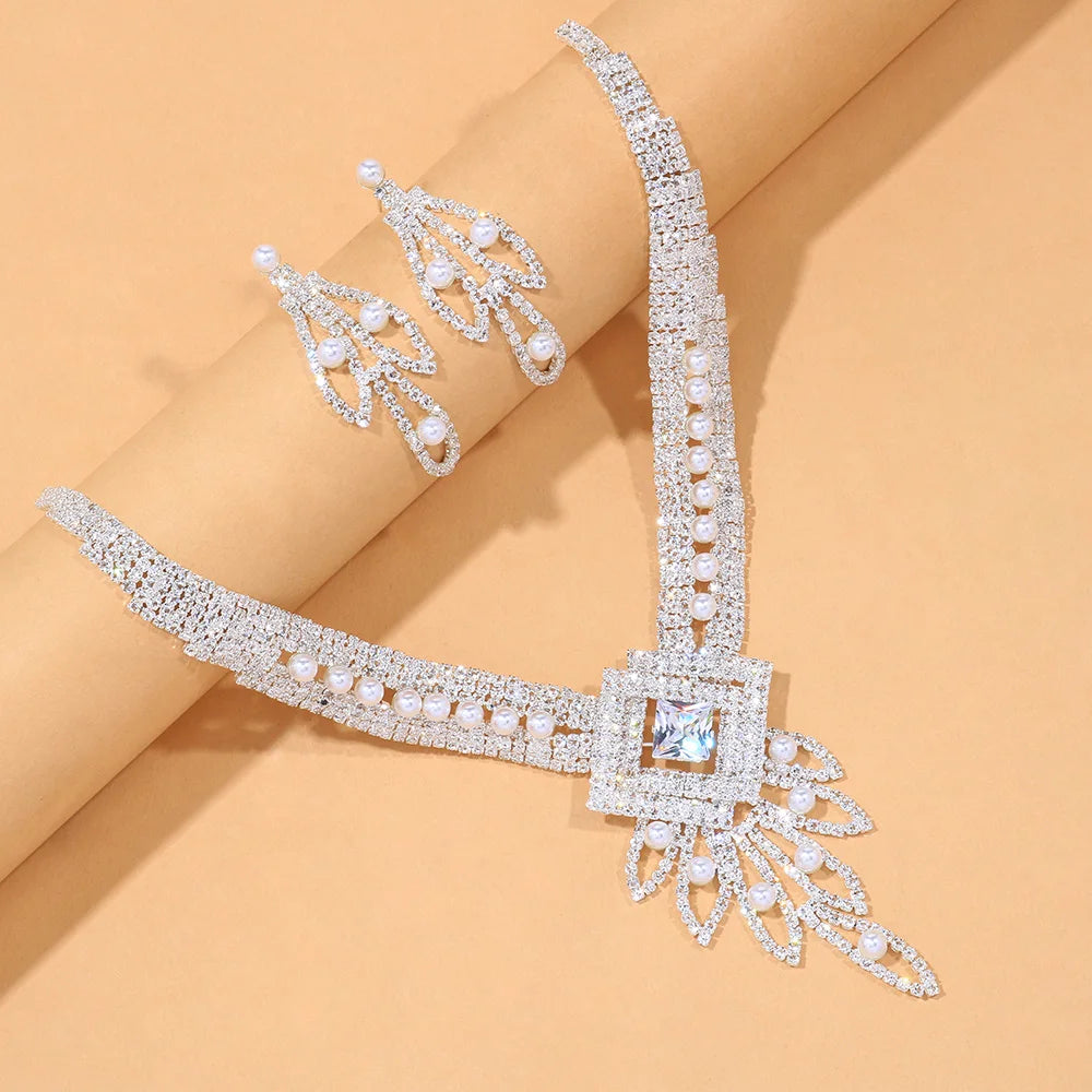 Stonefans Luxury Choker Rhinestone Bridal Jewelry Sets for Women Hollow Tassel Bead Crystal Necklace Set Festival Jewelry Gift