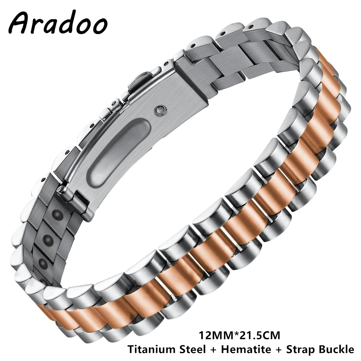 ARADOO Titanium Steel Magnetic Therapy Bracelet Stainless Steel Strap Buckle Link Bracelets