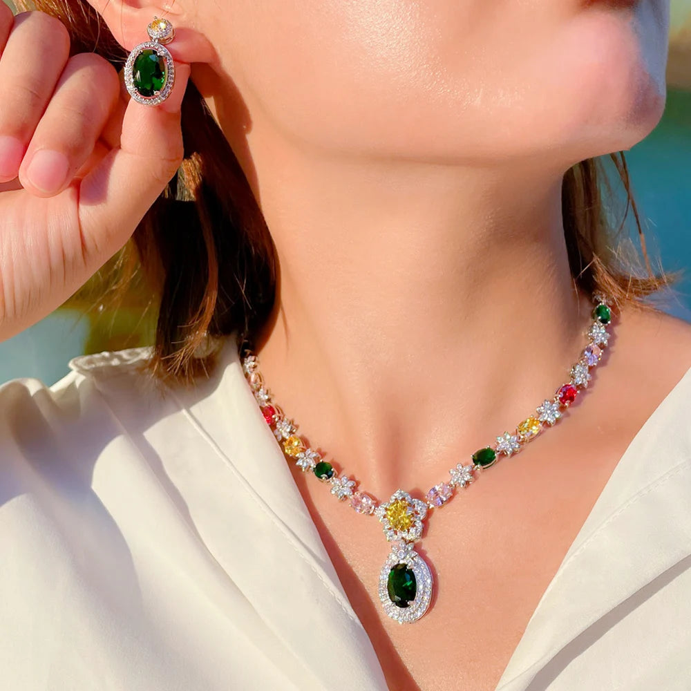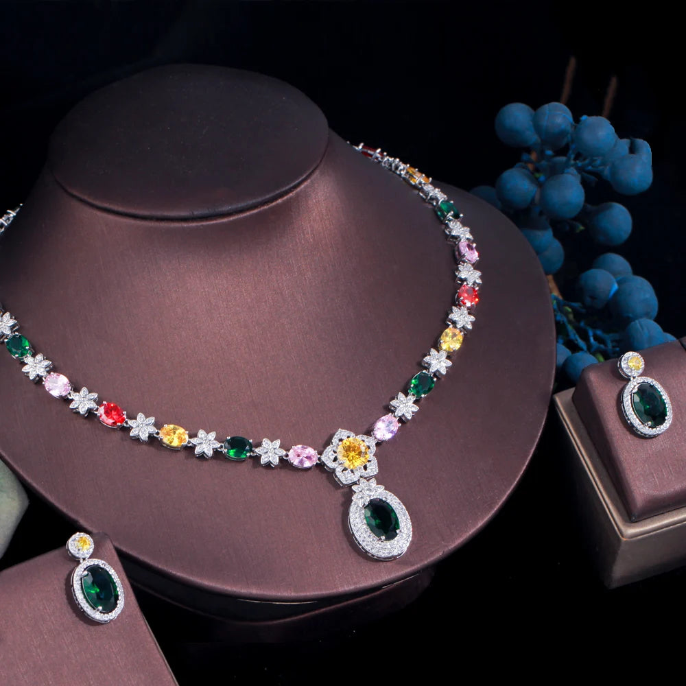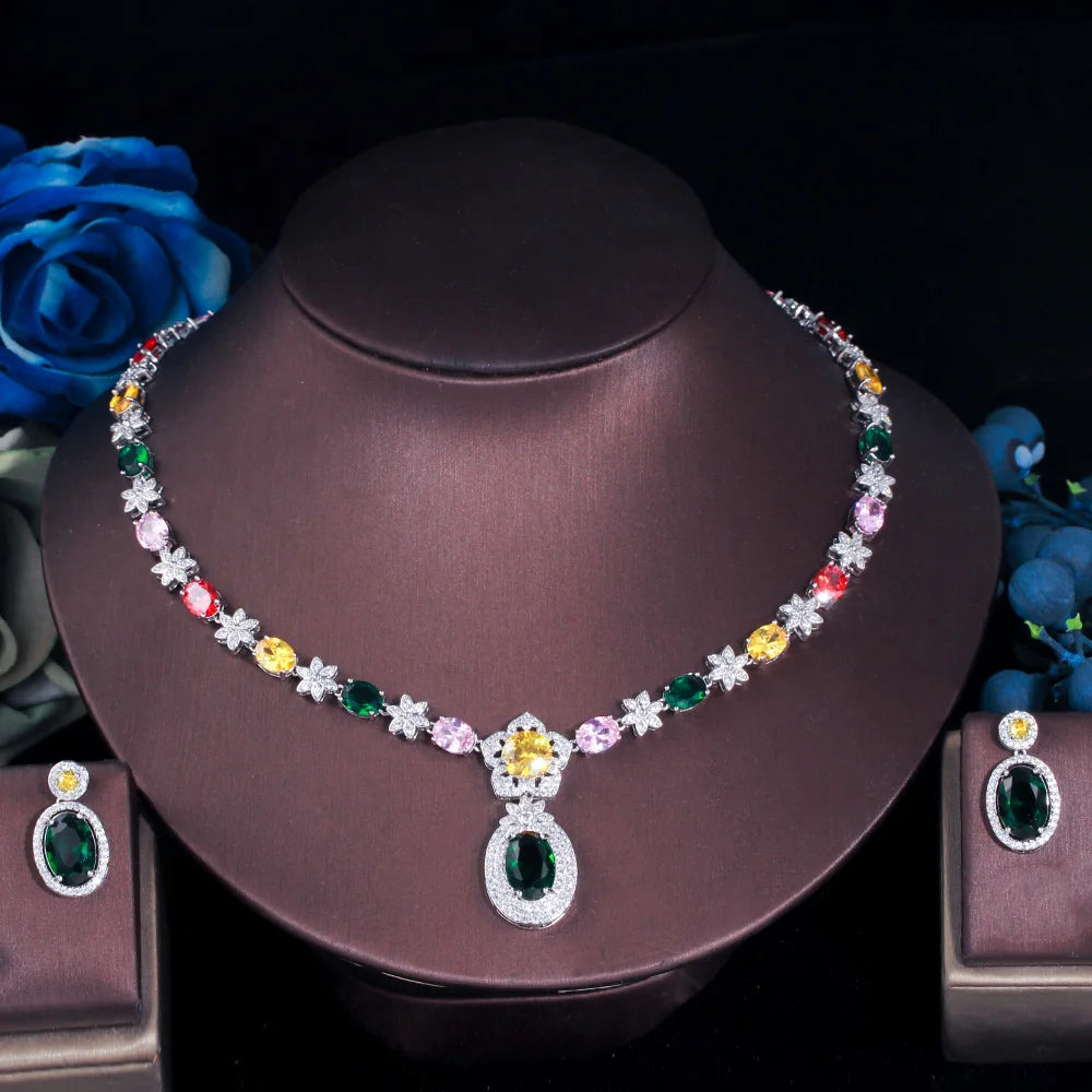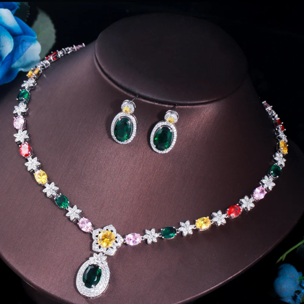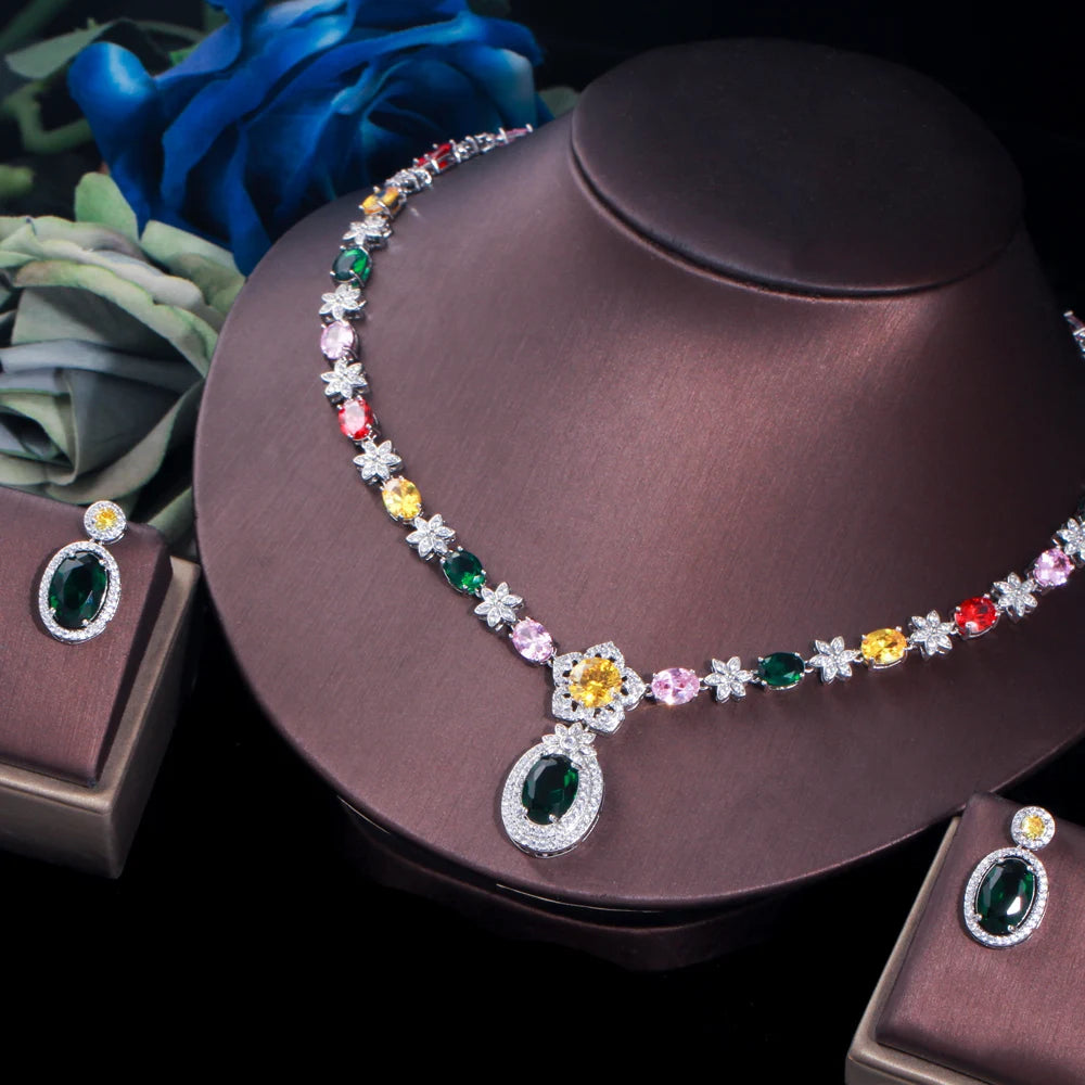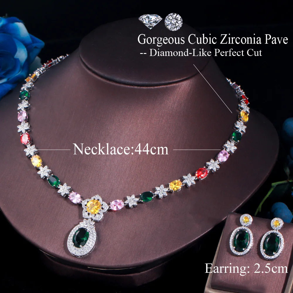 Trendy Multicolor Cubic Zirconia Geometric Earrings and Necklace Fashion Party Jewelry Set