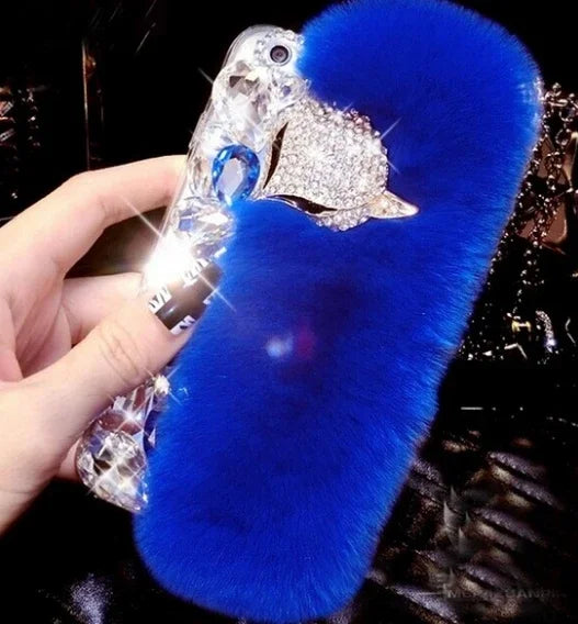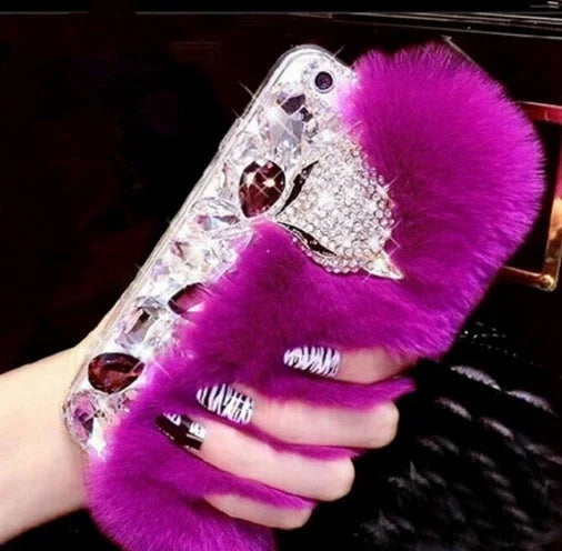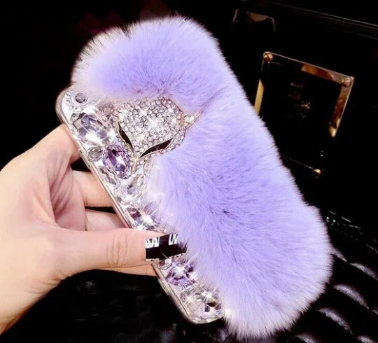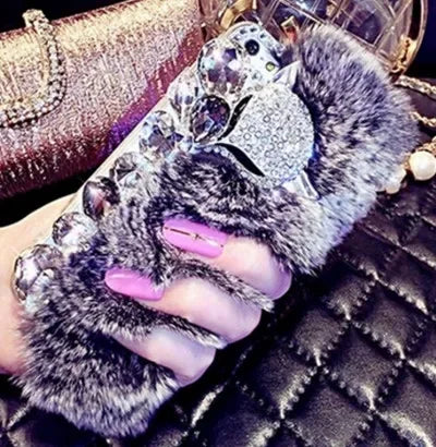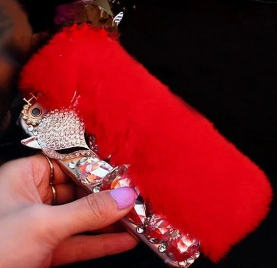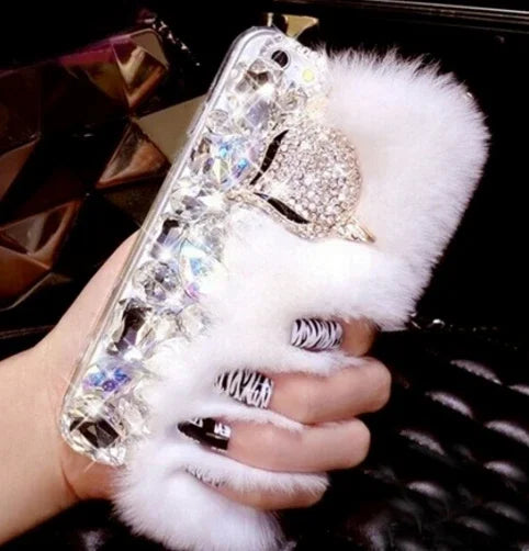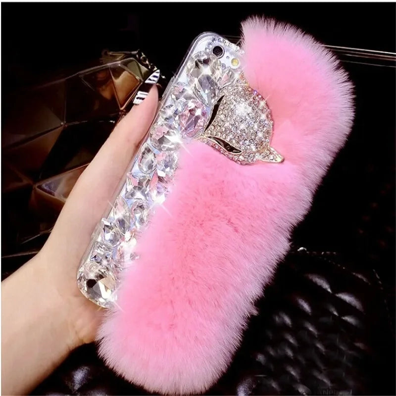 Warm Fluffy Rabbit Fur Bling Diamonds Soft Phone Case Cover For Samsung S24 S10 S20 S21 S22 Ultra S23 PLUS Note8 9 10 20 Capa