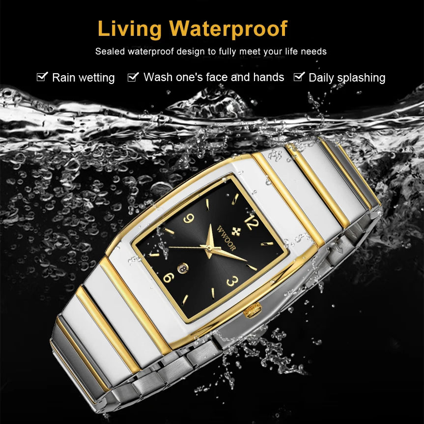 Watches for Men Luxury Square Men's Wristwatch Stainless Steel Waterproof Quartz Clock