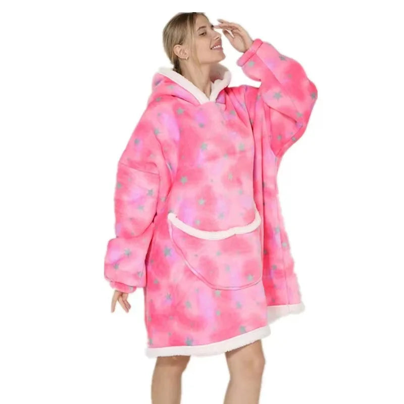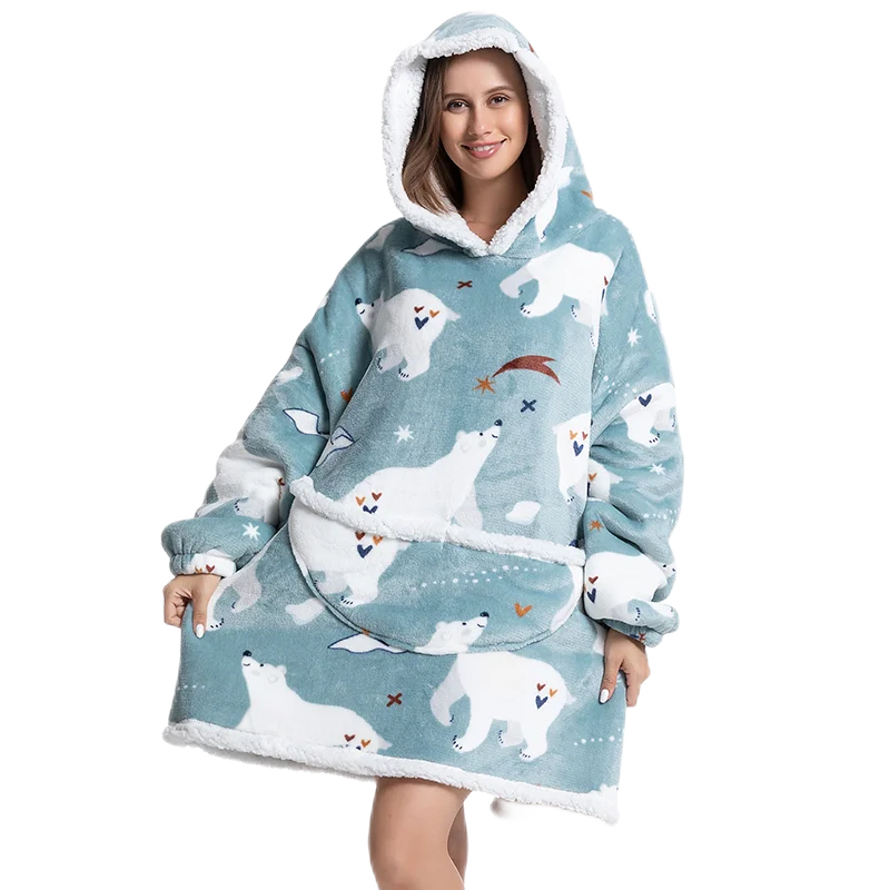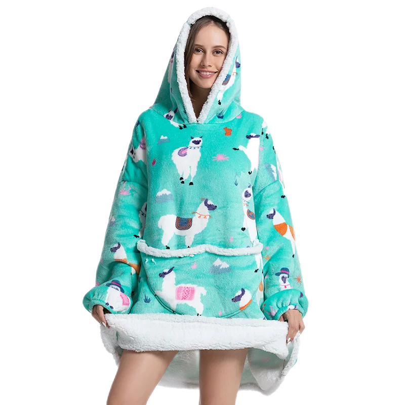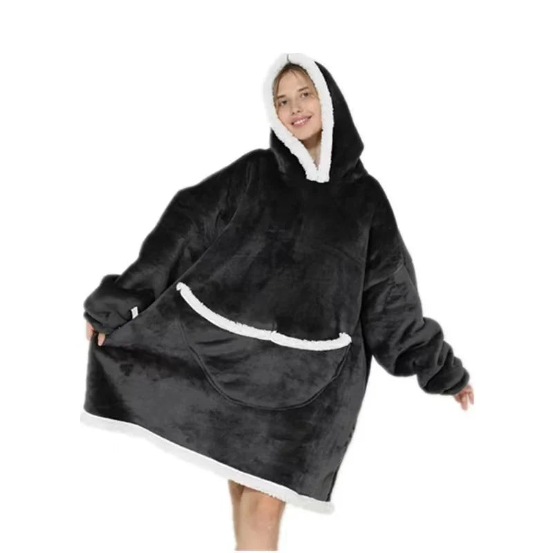 Winter Warm Blanket Hoodie with Sleeves Oversized Thicken Wearable Blanket Sweatshirt Flannel Fleece Sherpa Giant Hoodie