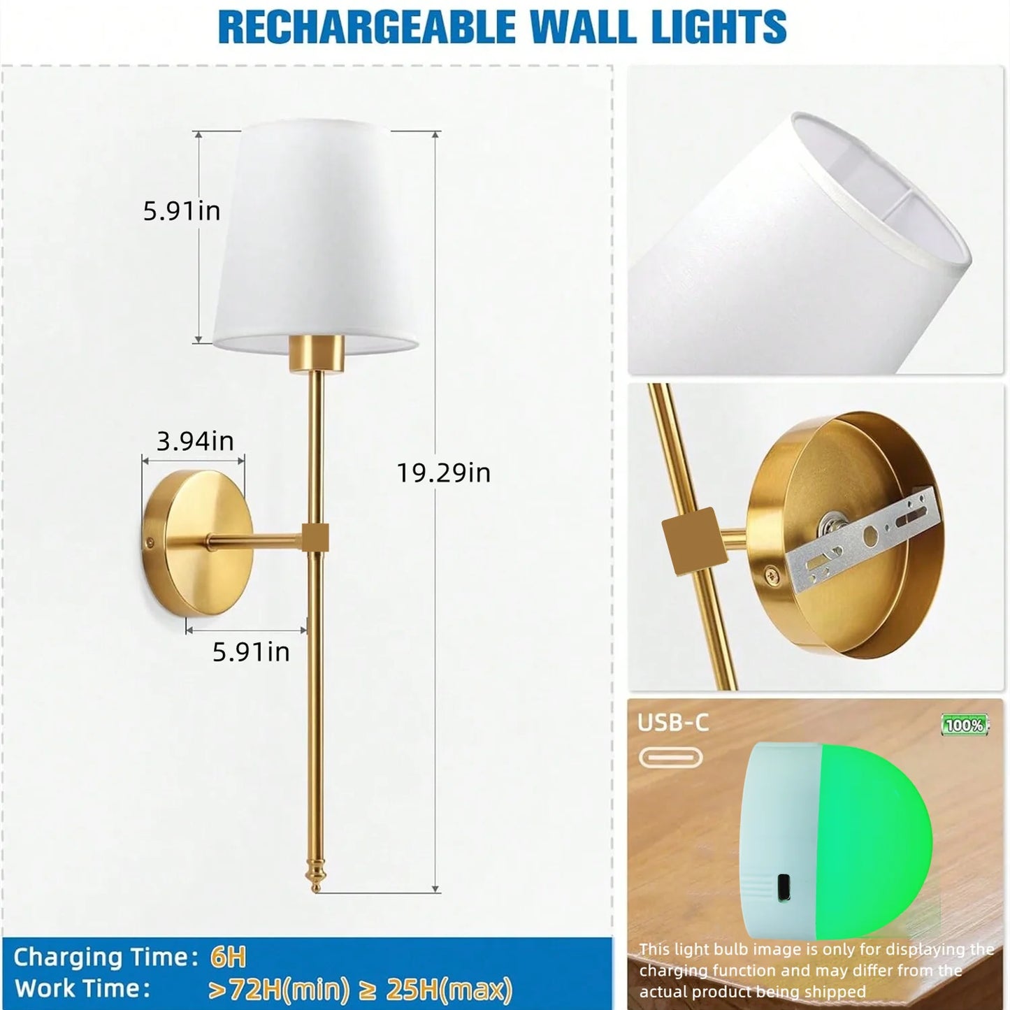 Our wireless wall light comes with a 5200mAh battery and USB-C charging (included in the package). Shine for 25 hours at maximum brightness and for 72 hours at minimum brightness. Wireless wall light installation, easy to decorate your walls and private spaces