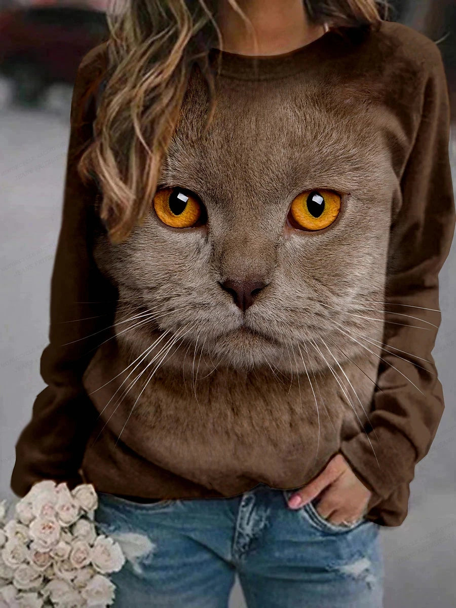 Women Fashion Hoodies Sweatshirts Cat Dog Print Hoodies O-Neck Kawaii Clothes Women Sweats Animal