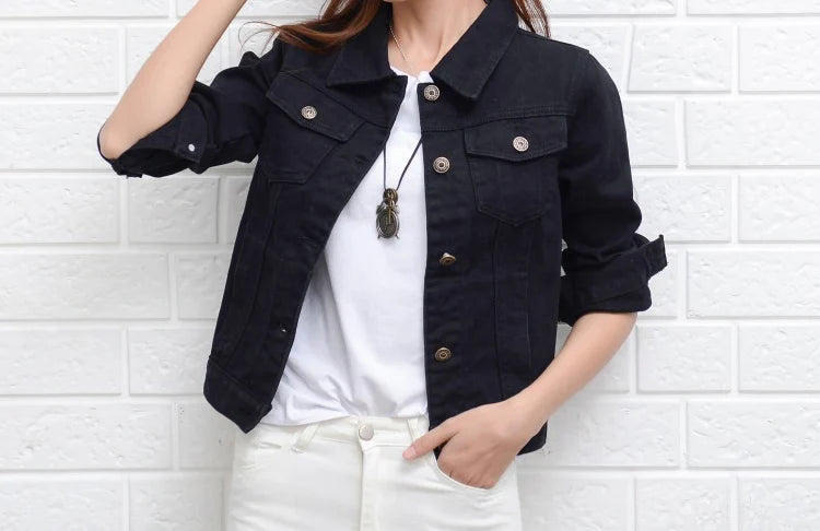 Women's Denim Jacket 2024 Casual Short Denim Jacket Women's Solid Color Jacket